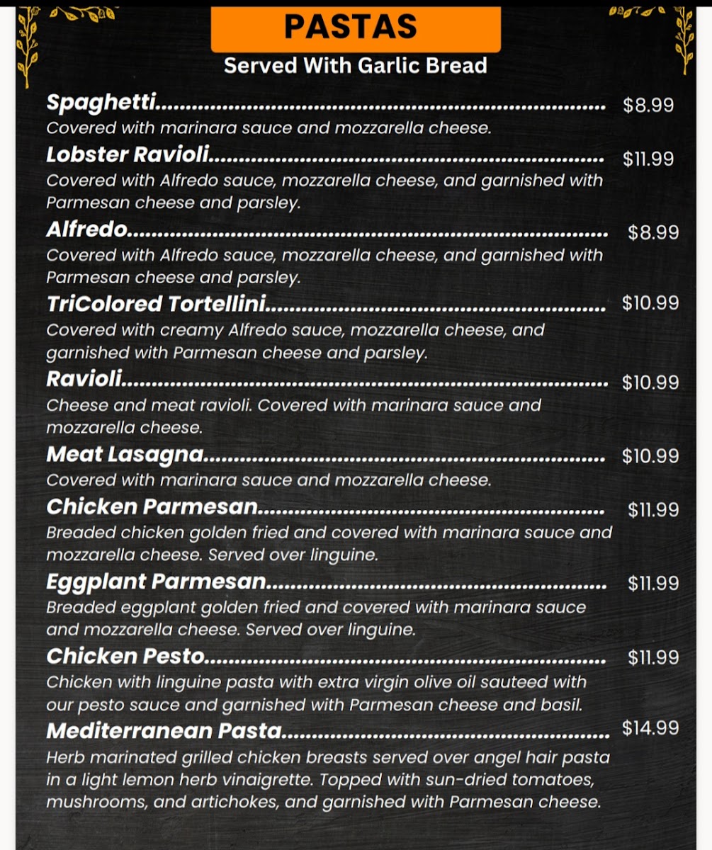 Chicken with linguine pasta with extra virgin olive oil sauteed with our pesto sauce and garnished with parmesan cheese and basil.