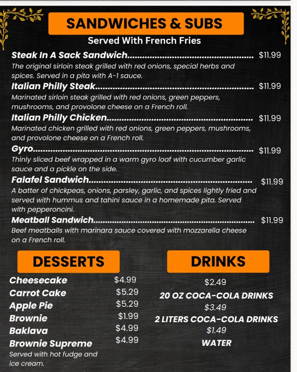 The original sirloin steak grilled with red onions, special herbs and spices. Served in a pita with a-1 sauce.