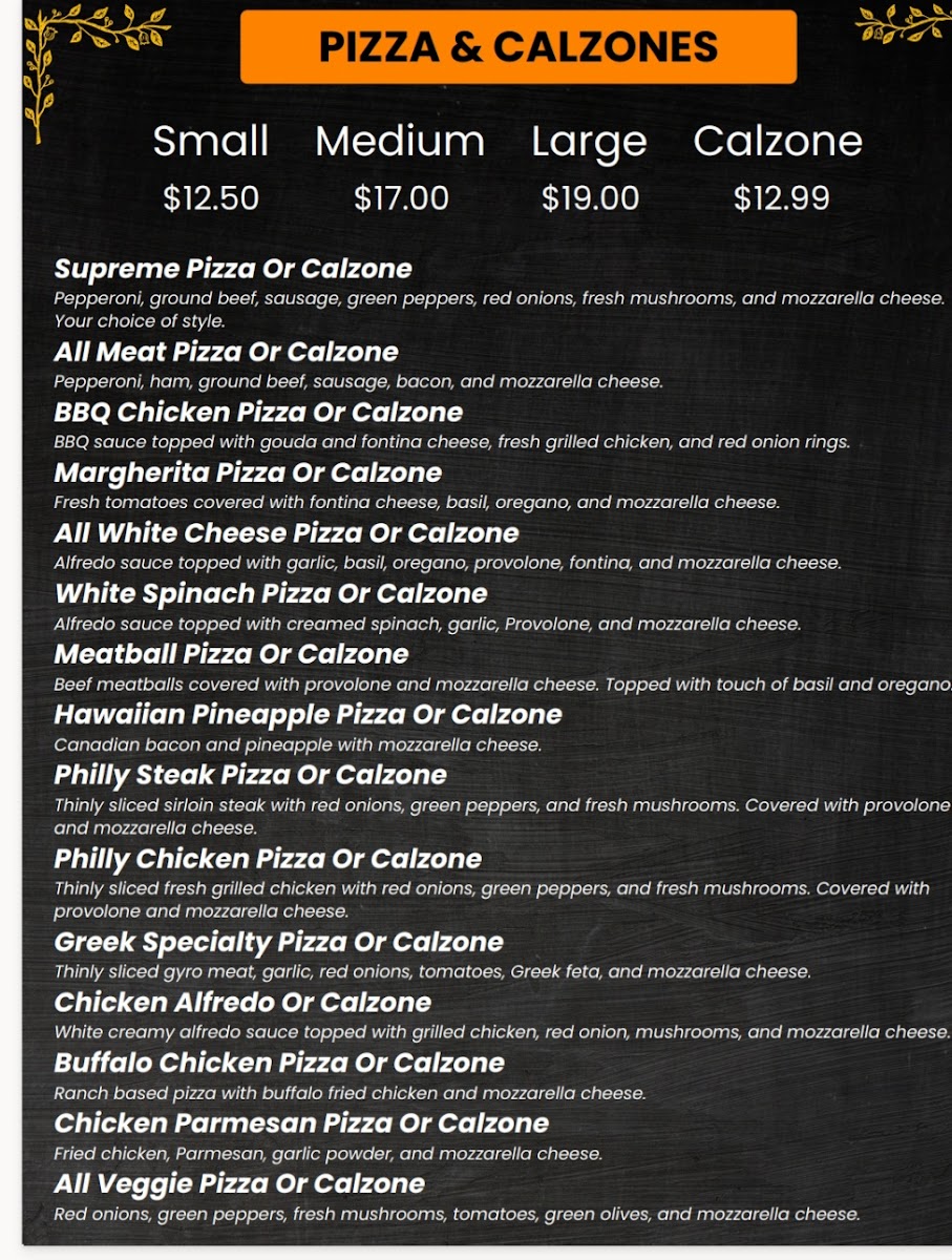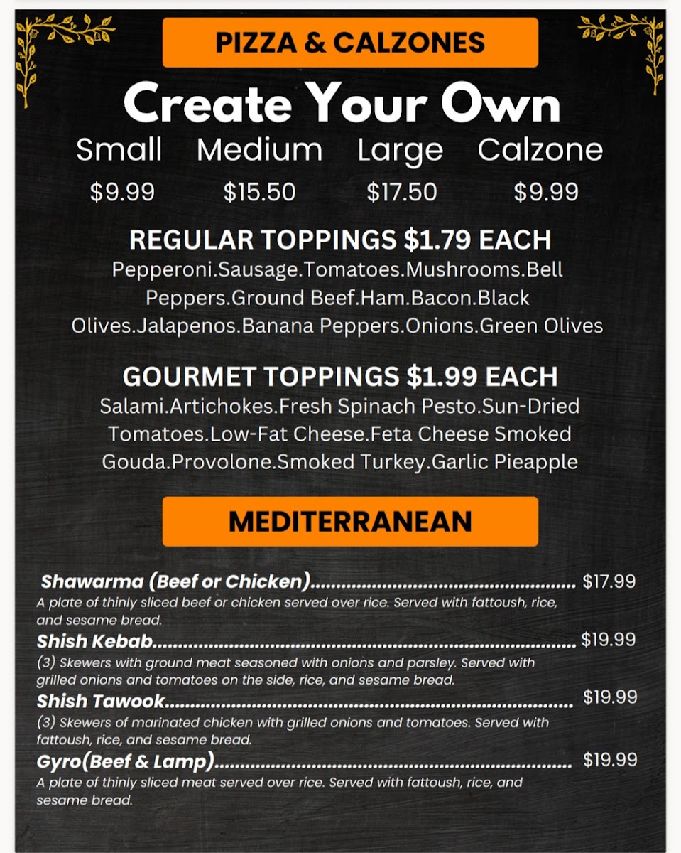 Choose the size: Small, Medium, Large. Custom toppings and combinations available.